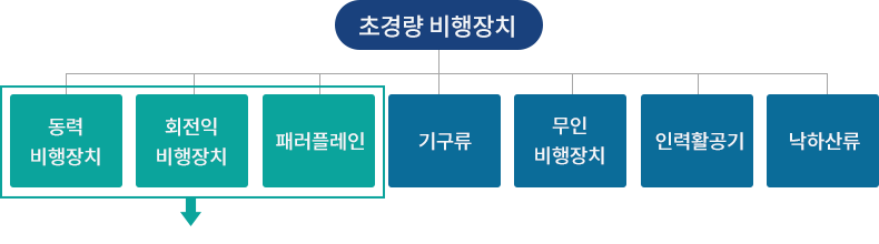 항공기 외에 비행할 수 있는 적은 규모의 동력비행장치, 회전익비행장치, 패러플레인, 기구류, 무인비행장치 및 인력활공기로 구분되며 각 국가에서 정한 안전기준 적용